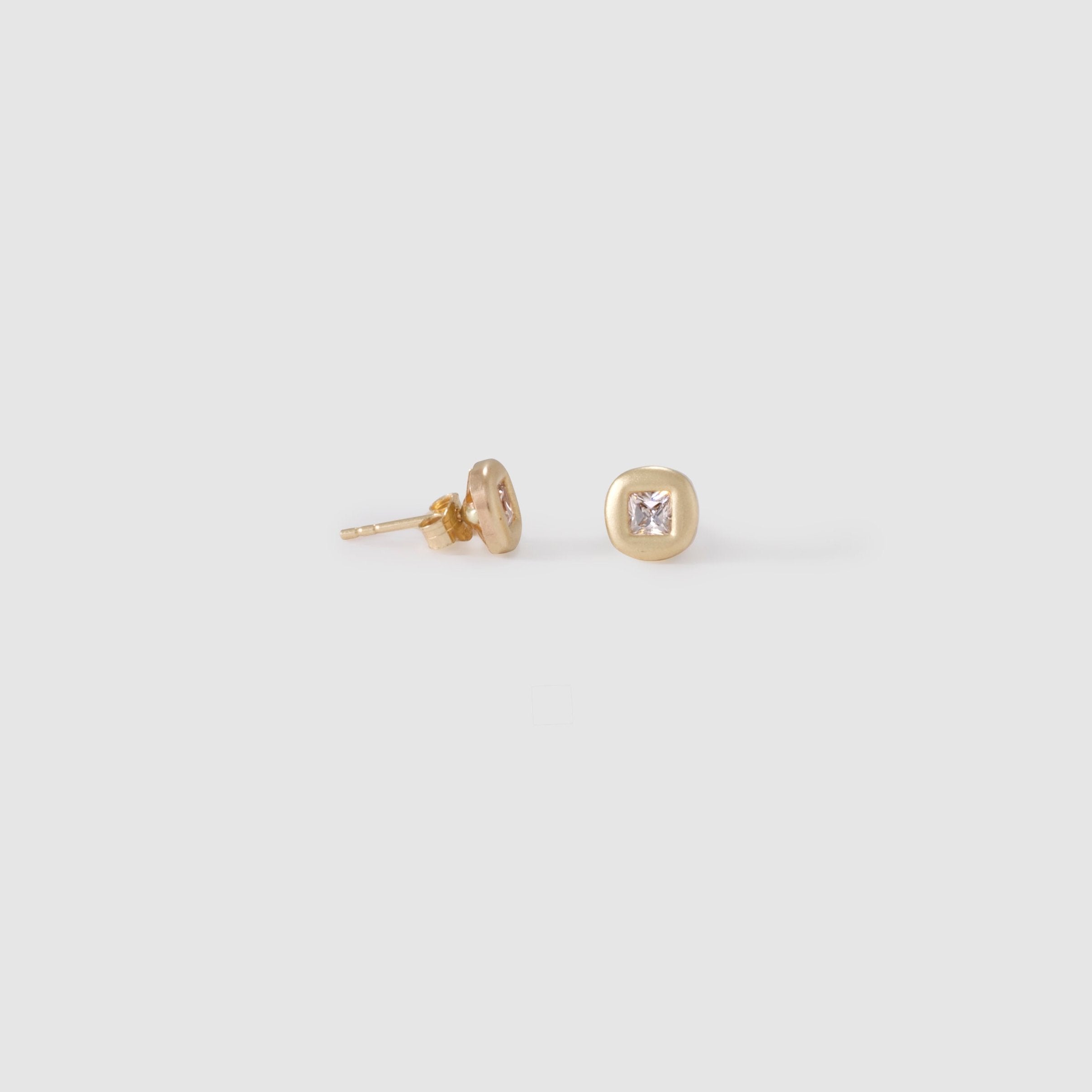 Indulge in the elegance of our Pillow Princess studs. These exquisite earrings feature a bezel-set design with stunning princess cut CZ stones, providing just the right amount of sparkle for your ears.